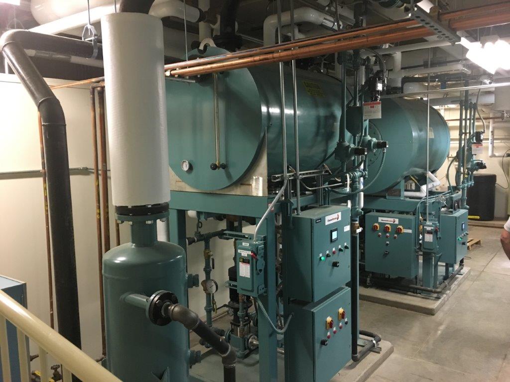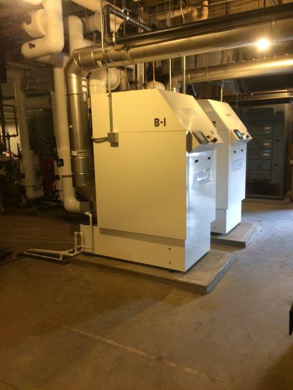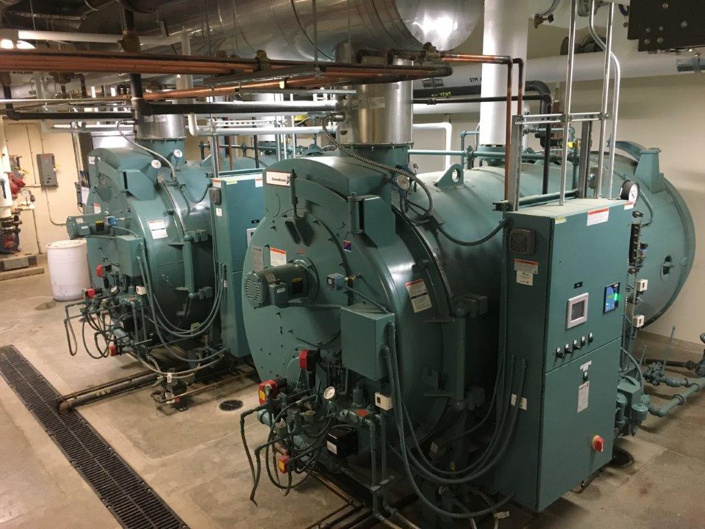 - Install two new Cleaver Brooks CFC 1,000 MBTU condensing boilers in existing mechanical space.